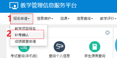各学院: 现正进行2020-2021-2学期期初补考各项工作,请各学院通知所辖班级学生,登录教务平台,开展“补考确认”工作。 一、补考确认时间 2021年3月3日15点——2021年3月5日12点 二、补考确认操作方法 1、学生登录http://jwpt.xzcit.cn,选择“报名申请”——“补考确认”: